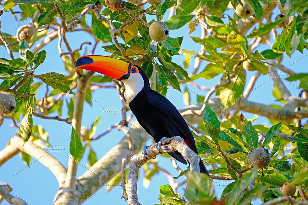 this Toucan with another bird! It uses its bill to reach out for fruits on branches too fragile to bear its weight.
